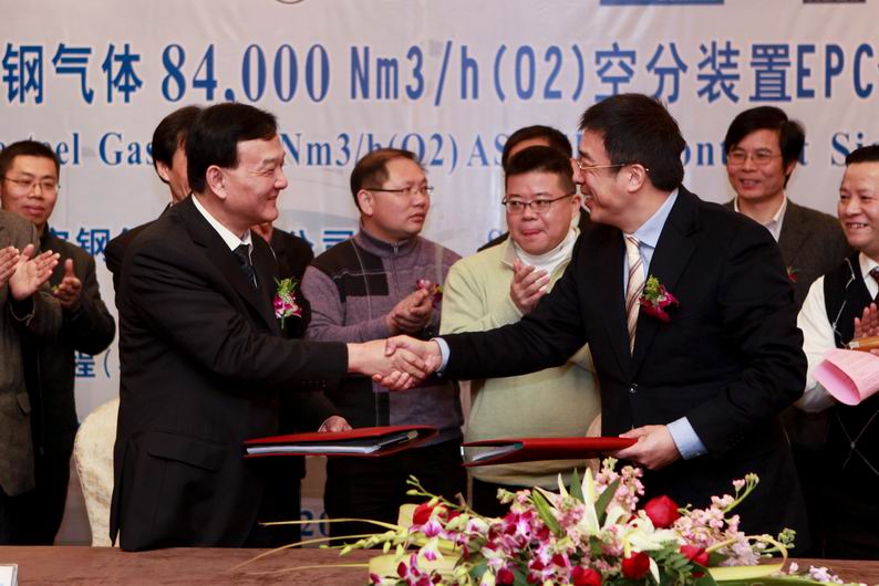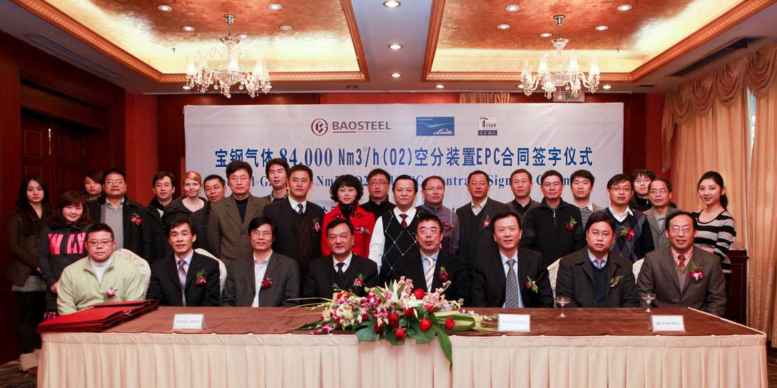 2011年1月30日,我司与宝钢集团气体营运中心、林德工程(杭州)公司在杭州隆重举行EPC项目签约仪式。宝钢集团气体营运中心盛中克总经理、林德工程(杭州)公司总经理詹家方和我司万军总经理等领导出席了签约仪式。
