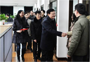 2013年2月19日,公司全体员工迎来了春节长假后的第一个工作日。上午10点整,公司党委书记、总经理万军率公司领导带着新春的祝福和问候,逐一走访公司各个楼层、办公室,向公司全体员工拜年,万总代表公司领导感谢大家在过去的一年里为公司发展做出的贡献,祝福全体员工新年幸福快乐。